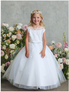 Girls Cascading Lace Bodice and Skirt with a Thin Satin Sash Dress