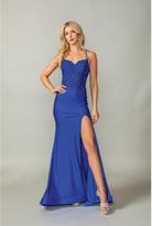 Spaghetti Strap Gown with Floral Applique Bodice and Side Slit Prom Dress