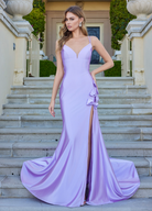 Strapless corset gown with ruching and slit
