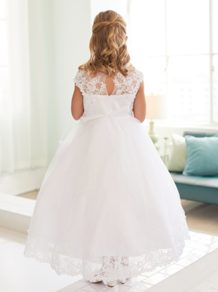 Lovely Illusion Neckline Bodice with Lace Applique and Rhinestones. The Tulle Skirt also has a Lace Applique Hem.