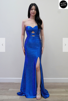 Hot Stone Satin cutout bow gown with side slit